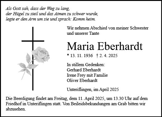 gestorben am 2. April 2025 in Pfalzgrafenweiler