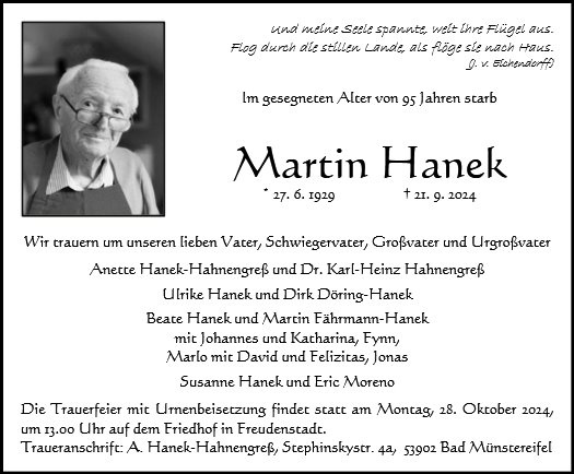 In Erinnerung an unsere Eltern Martin und Brigitte Hanek